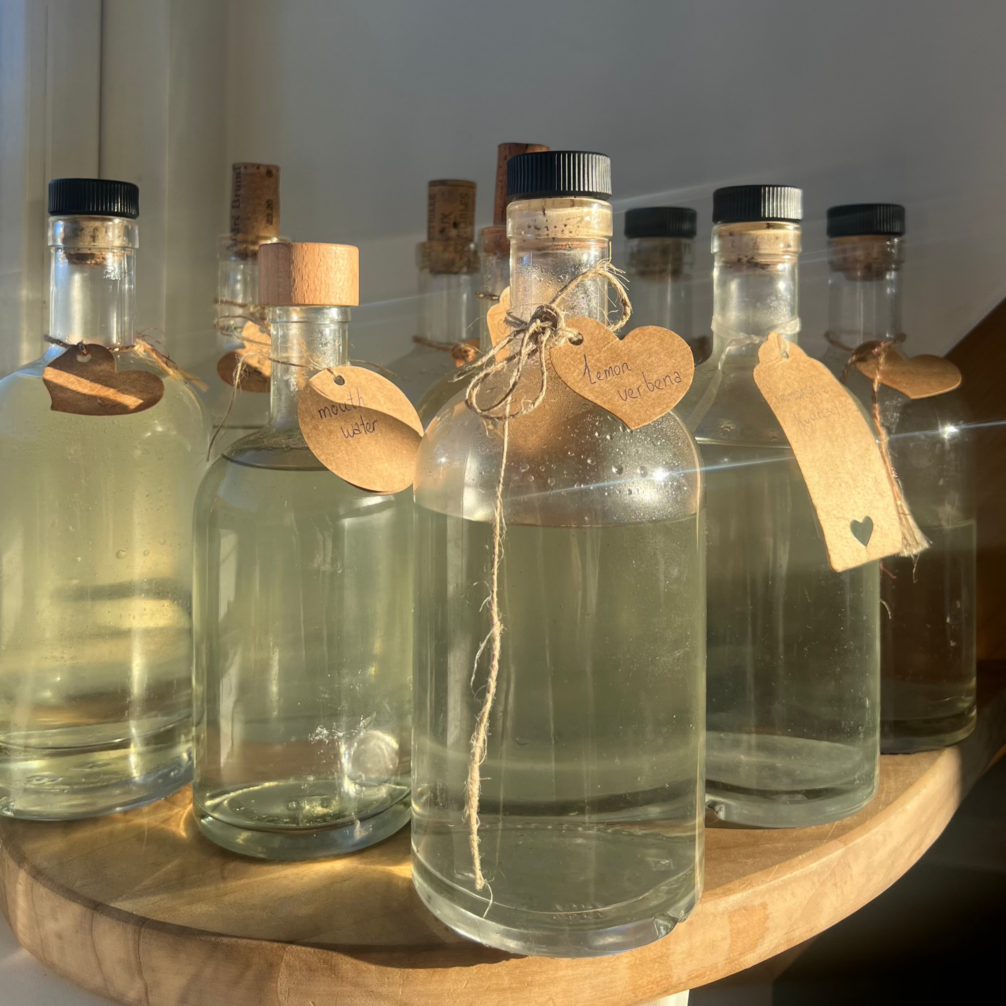 Our products are all natural and based on home made hydrosols. This is medicinal water, coming from the distillation of flowers, fruits, plants and herbs.